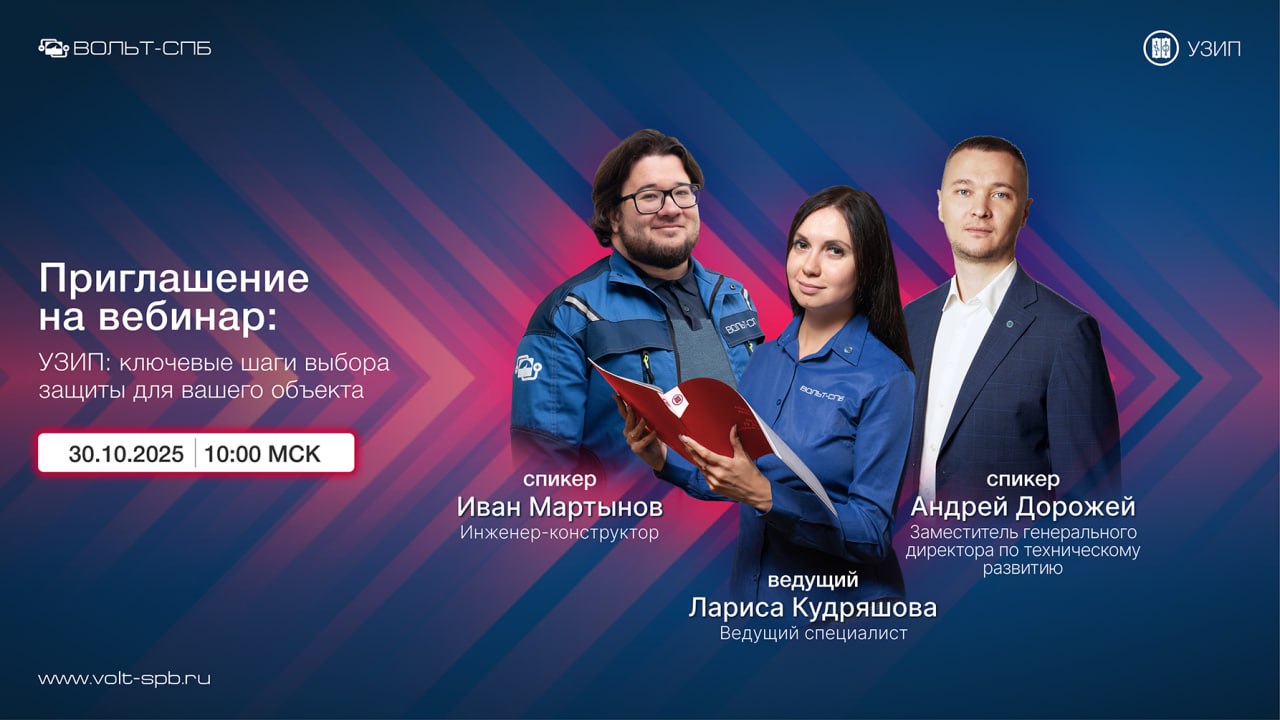 30 октября 2025 года в 10:00 по московскому времени компания «ВОЛЬТ-СПБ» проведет вебинар на тему «УЗИП: ключевые шаги выбора защиты для вашего объекта».